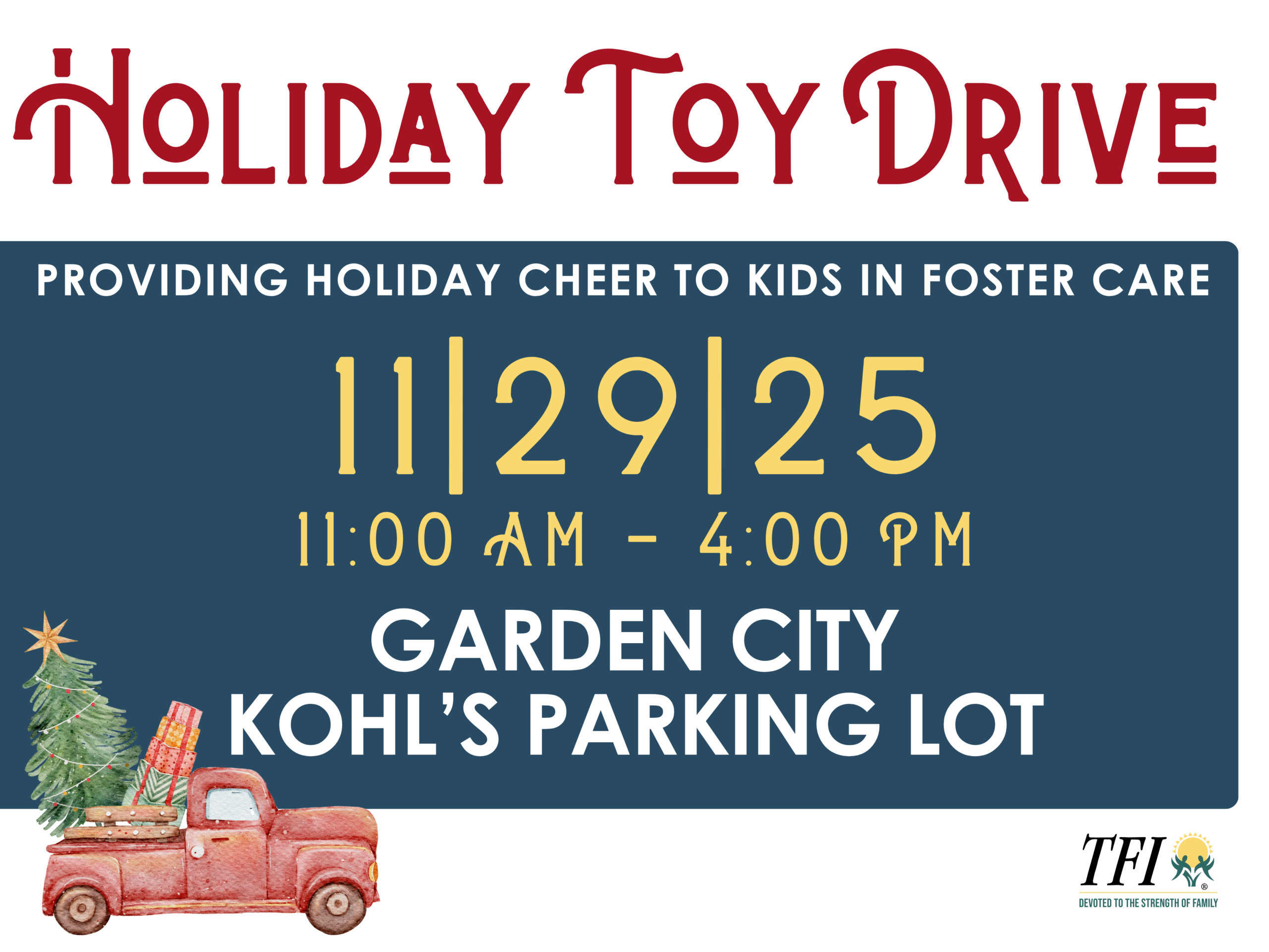 Your generosity can make a child’s holiday brighter! Drop off toys and be part of something special. 💛